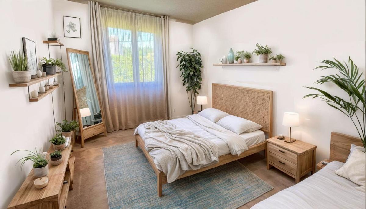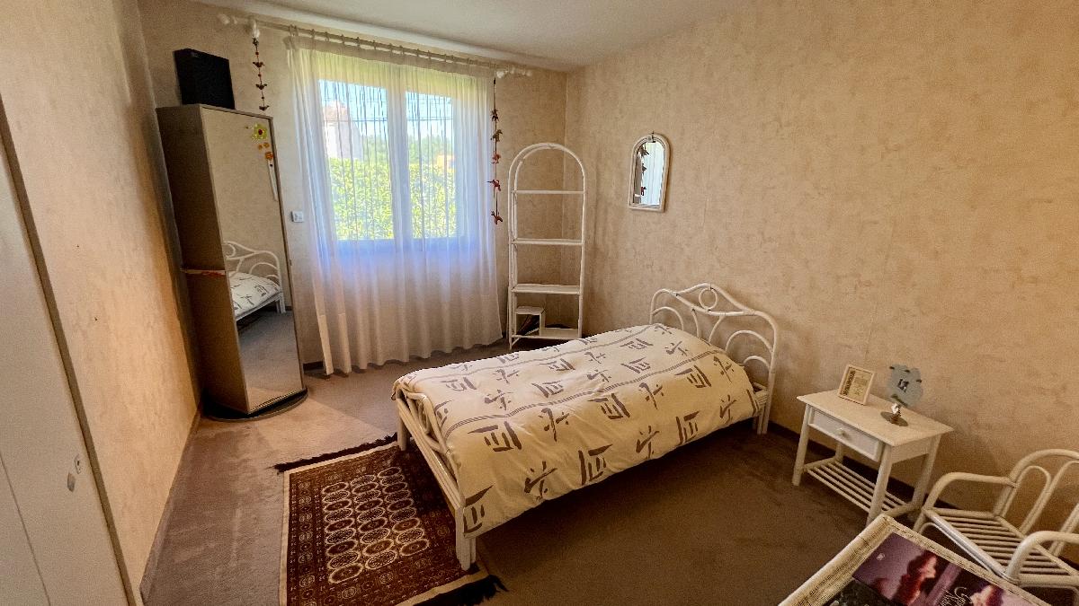 – Une chambre spacieuse avec plafond cathédrale et entrée indépendante, idéale pour une location meublée avec quelques travaux d'aménagement.
