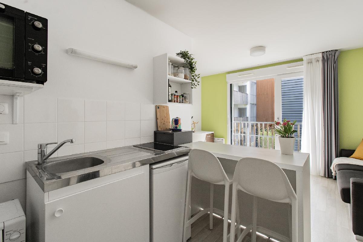 Au sein de la résidence étudiante La Rivière à Nantes, nous vous présentons un studio meublé de 21,4 m², une surface supérieure aux standards du marché étudiant où les studios oscillent généralement entre 18 et 19 m². Ce volume plus confortable permet une réelle différence dans l'usage au quotidien et représente un véritable argument locatif.